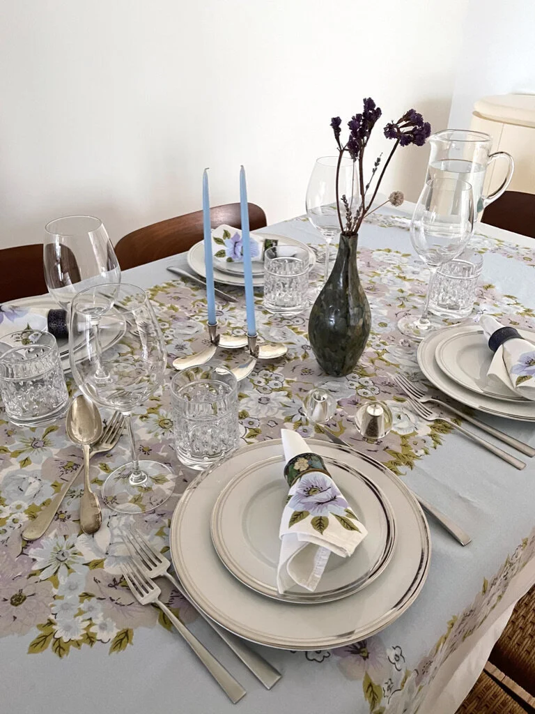 An arsenal of a few linens is the easiest way to differentiate home dining occasions. If you don’t have your “forever” dining table yet, no worries: a floor-length cloth is a great way to conceal any makeshift surface. Antique markets are full of beautiful linens, often with endearing monograms from past owners.