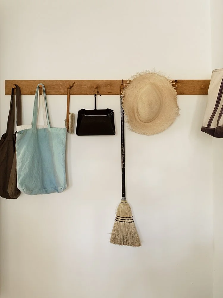 Don’t be shy about making your space looked lived in. Displaying your everyday utilitarian wares in an attractive fashion, such as on a rustic peg rail or in a handmade basket. For more tips on on storage and organization with a design eye, read Why your storage should double as decor.