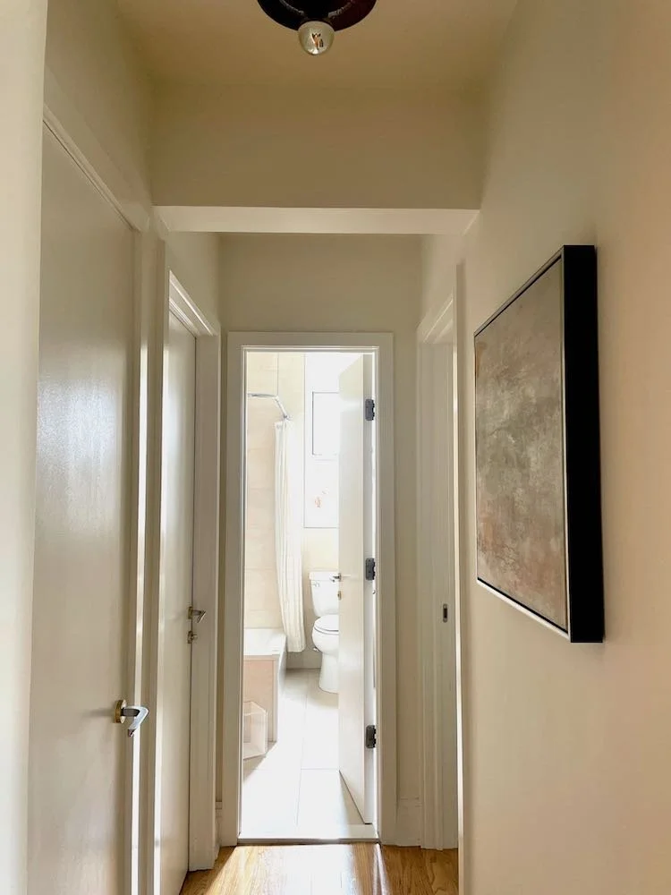 And while there might not be much space for furnishing a narrow NYC hallway, the right artwork, light fixture, and rug will make your design feel intentional. These finishing touches are especially impactful to add character to a new build apartment that needs a spice of personality.
