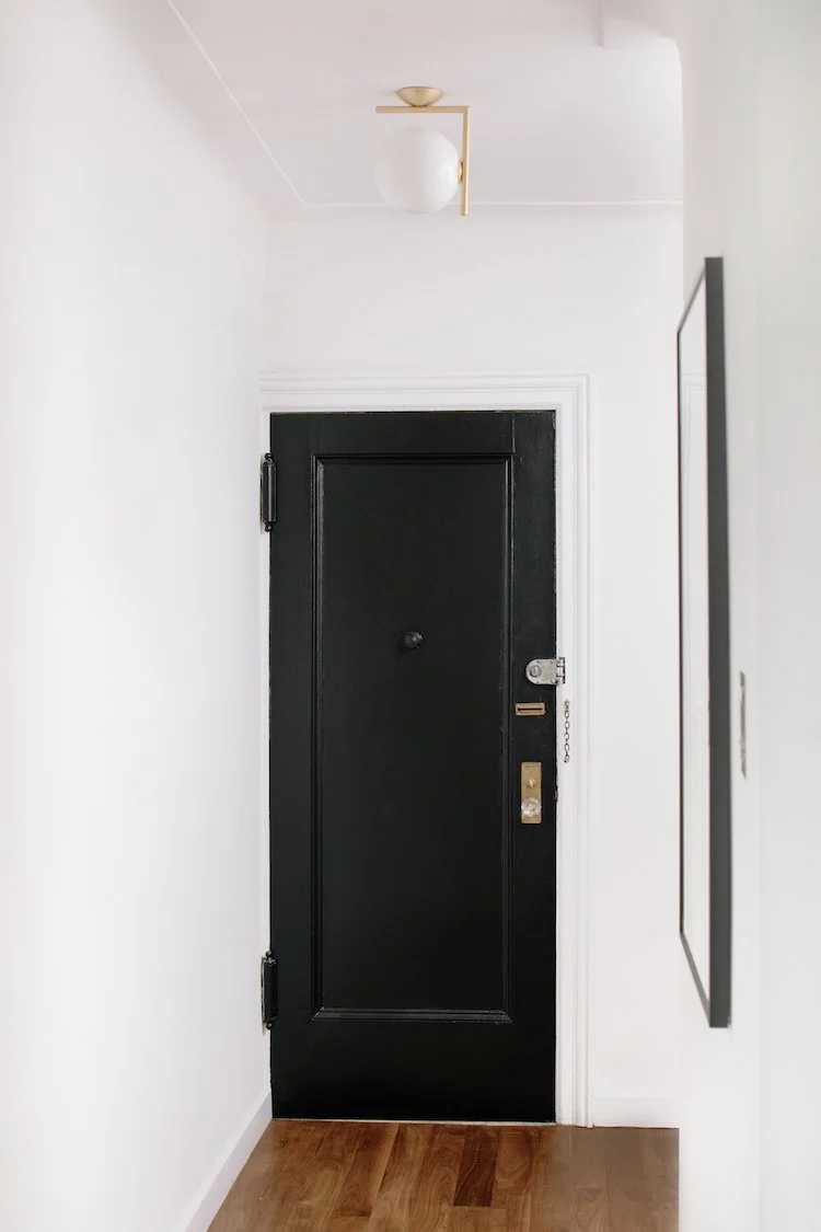 Keeping it simple makes a small space breathable. In this minimal Brooklyn entry hall, the design is limited to a sleek IC light by Michael Anastassiades and a thin framed mirror, echoing the paint and hardware of the front door. Design & Photo: Space Exploration
