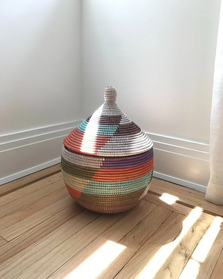 Handmade baskets do wonders for storage. With their added bonus of all-natural decor, they’re perfect for piling magazines, throw blankets, remotes, and winter accessories to keep your space tidy. I especially love woven baskets from West Africa that often come with shapely lids or leather handles.
