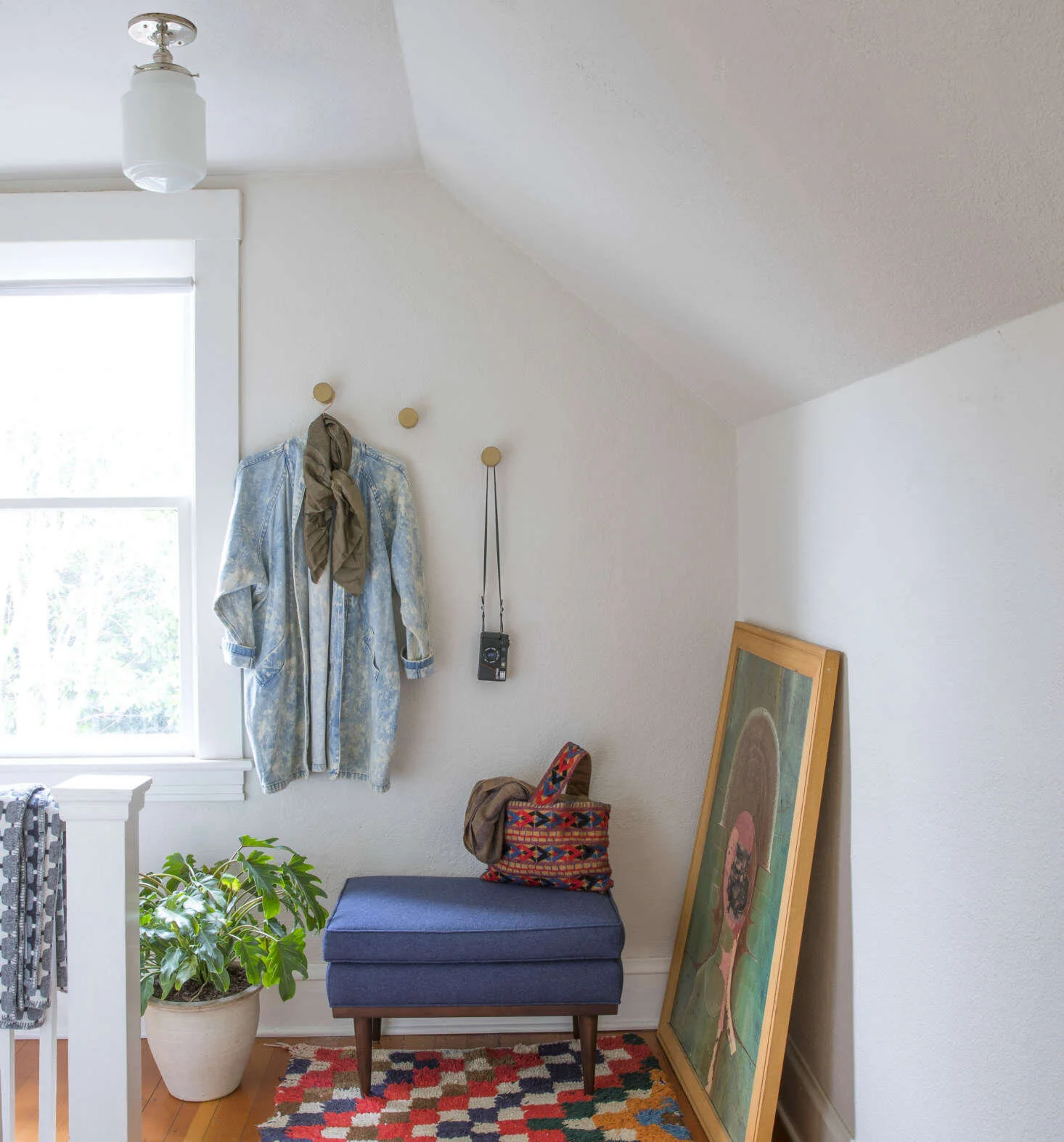 An old camera and accessories displayed on stylish hooks. Design: Angela Medlin / Photo: Schoolhouse Electric