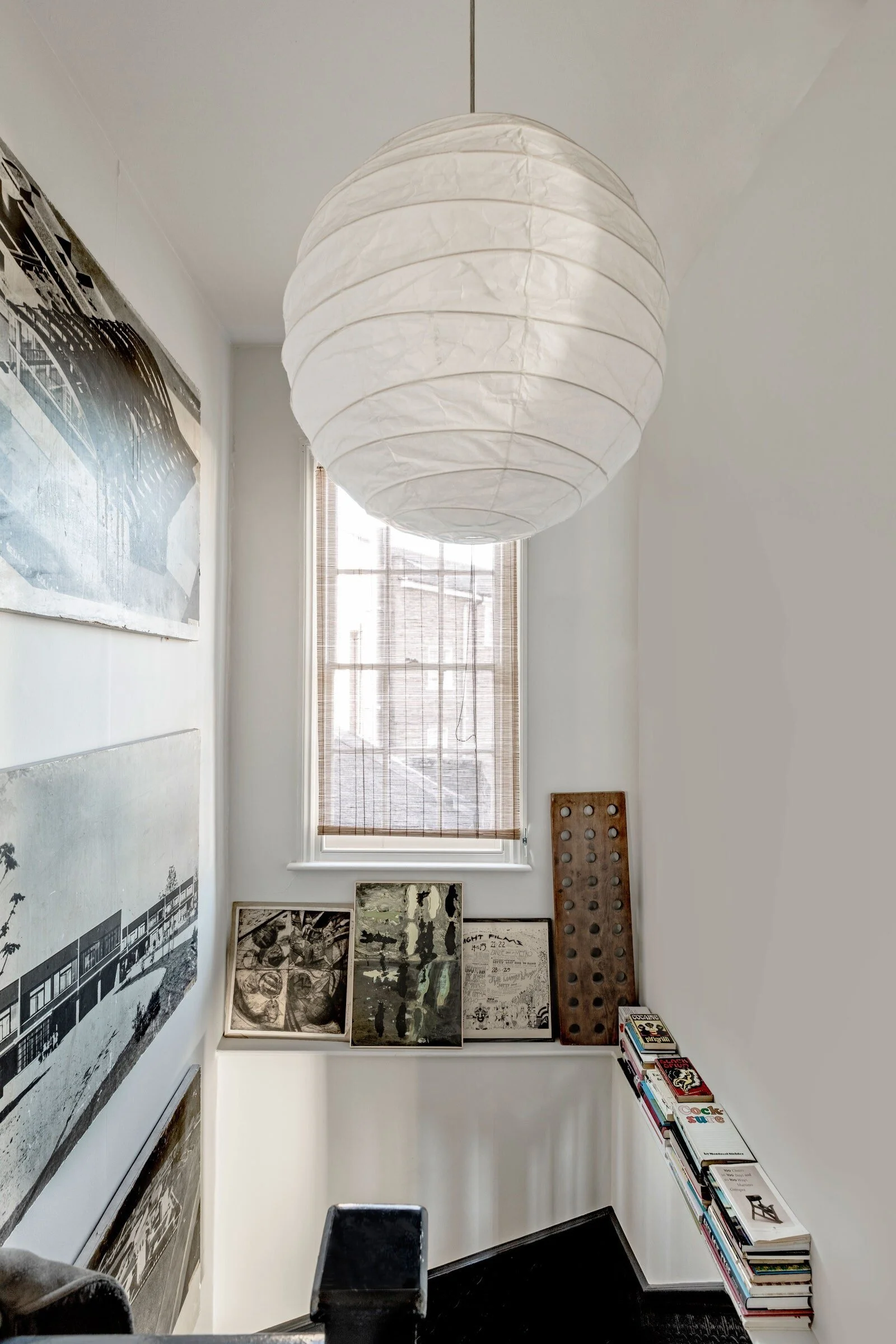 A staircase ledge holds an overflow of books and artworks. Design: Hollie Bowden / Photo: Helenio Barbetta/Living Inside