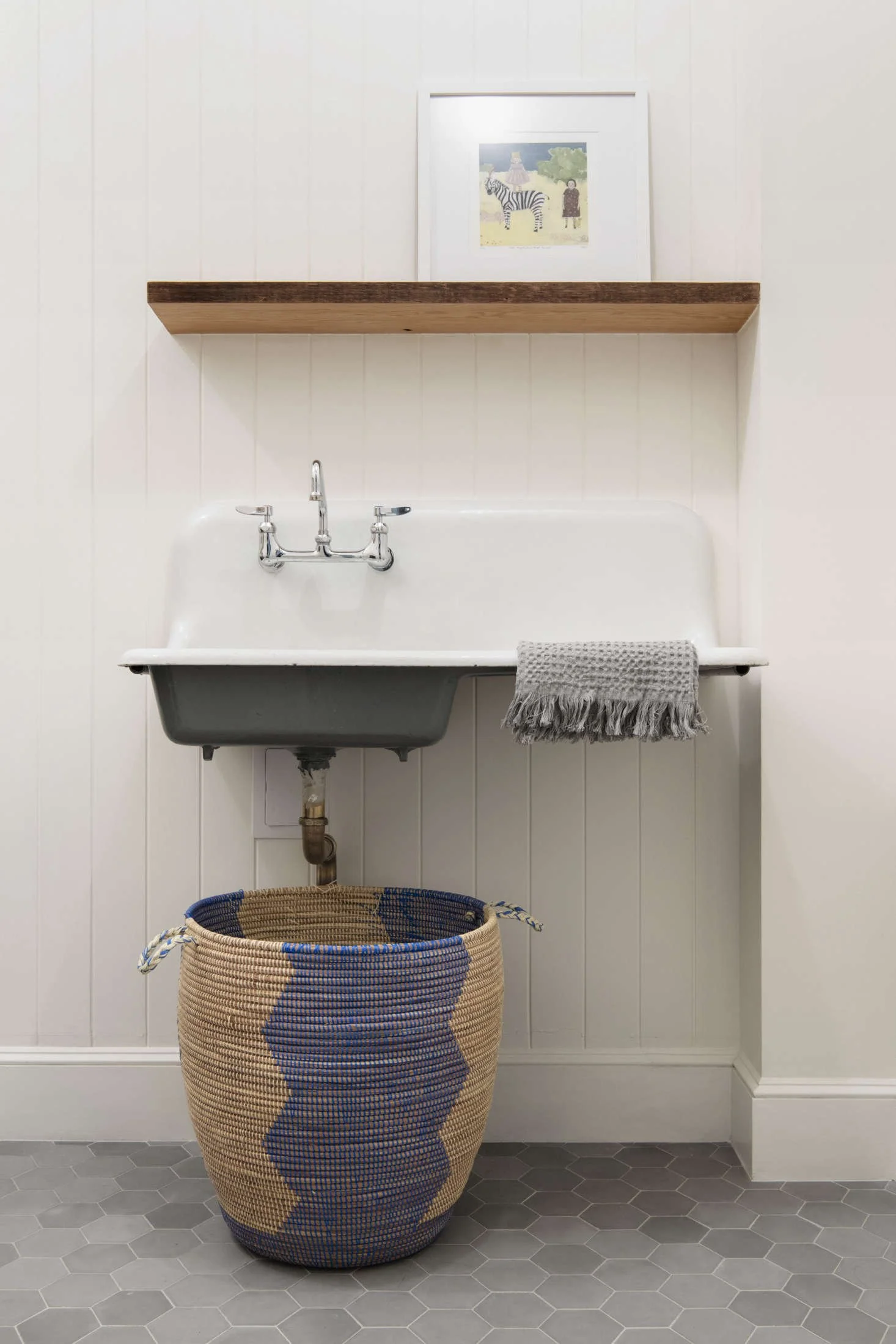 A West African basket adds a textured touch to a Brooklyn brownstone’s laundry. Design: Elizabeth Roberts / Photo: Dustin Askland