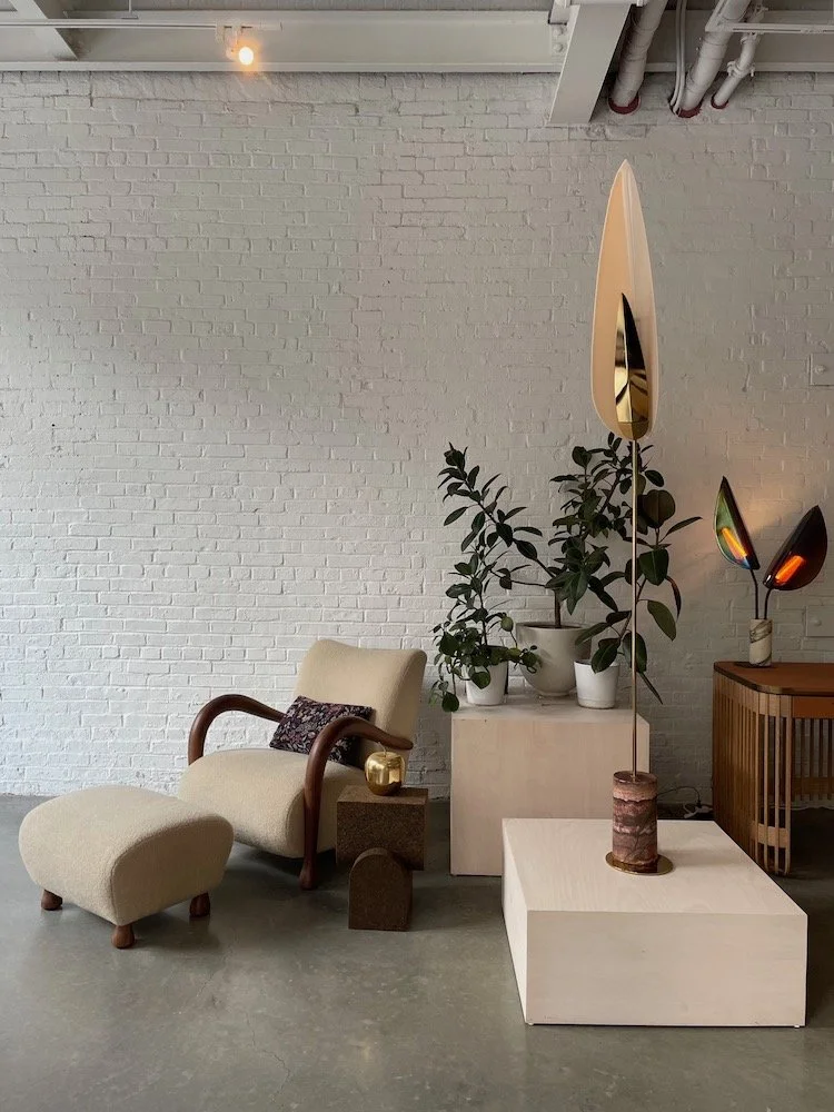 Streamlined forms and neutral tones define Form Atelier’s aesthetic, yet eclectic sourcing that boils down tasteful design to its very essence is Nolan and Nguyen’s unique talent. A visit to the showroom is a joy in itself: this Tribeca vintage design gallery space feels like an oasis of calm in New York City, with tall columned pillars, exposed beams, and sparely placed intriguing displays that bring an intellectual inquisitiveness to interior design possibilities.